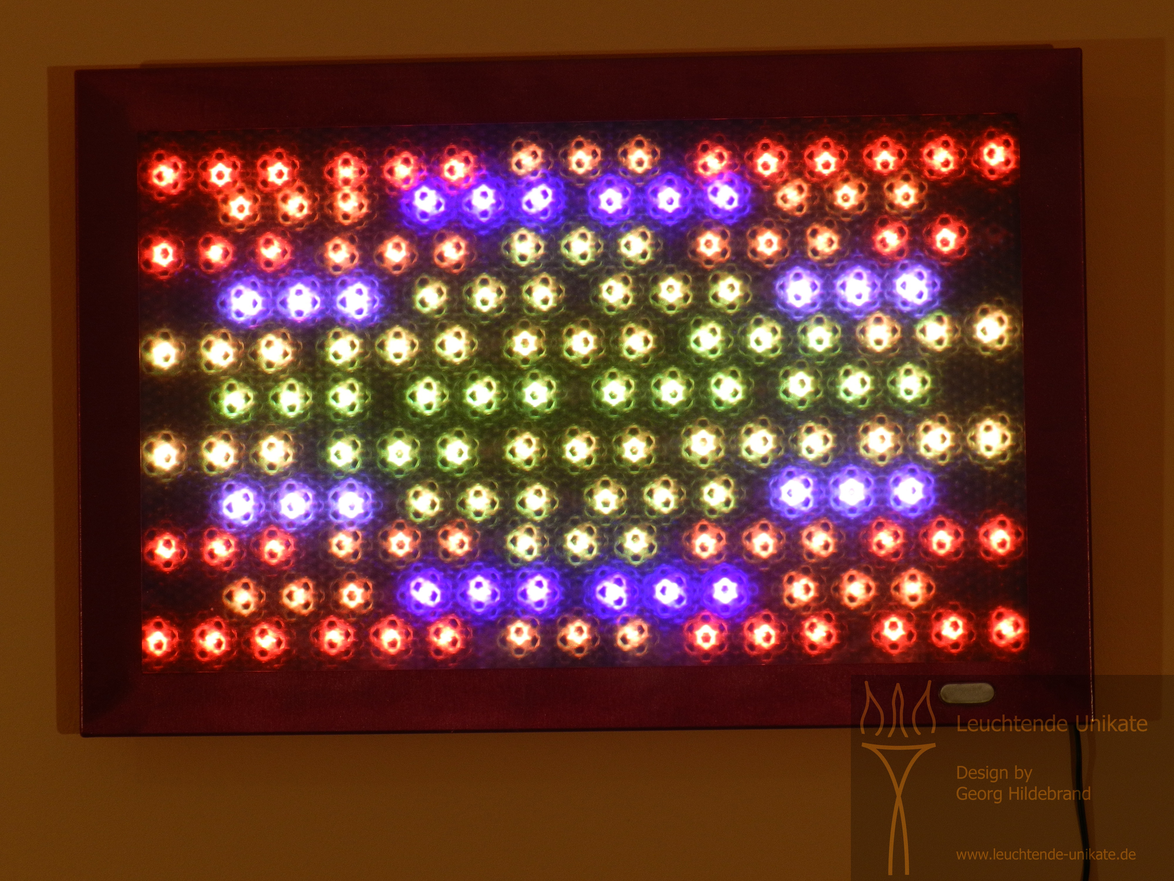 Die Wandleuchte MOLDURA D ist ein Blickfang durch ihre sich verändernde Farb- und Stimmungsspiele. Wie ein Bild hängt sie in einem Rahmen an der Wand. Eingeschaltet ziehen die langsamlaufenden Farbeffekte die Aufmerksamkeit auf sich. MOLDURA D ist eine reine Effektleuchte, sie ist ein Kontrapunkt zu der klassischen Allgemeinbeleuchtung.
